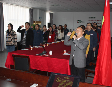 2014年3月19日上午9:00公司支部全體黨員在會議室召開第一次黨員大會,整個會場莊嚴(yán)而肅穆。 大會分5個議程,在此會上,全體黨員面對黨旗和鮮艷的五星紅旗在支部書記何總的帶領(lǐng)下重溫入黨誓詞,全體黨員再次認(rèn)真全文學(xué)習(xí)了黨章,并選舉產(chǎn)生了支部委員。