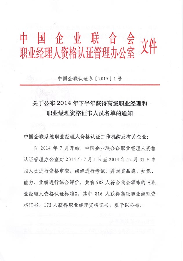 熱烈祝賀我公司劉保國(guó)等6位同志獲得職業(yè)經(jīng)理人資格證書(shū)