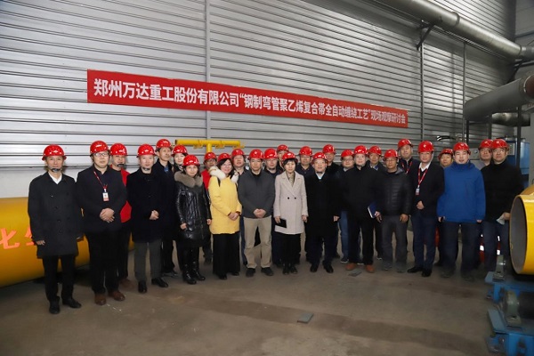 鋼制彎管聚乙烯復(fù)合帶全自動纏繞工藝現(xiàn)場觀摩研討會在鄭州萬達(dá)重工股份有限公司成功召開
