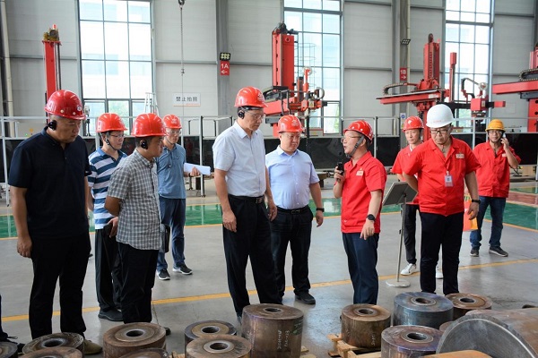 魏學彬副主任一行先后深入堆焊智能制造車間、彎制車間、機加工、物流倉儲等生產(chǎn)車間進行了參觀,實地查看了公司先進的生產(chǎn)設備、繁忙而有序的生產(chǎn)環(huán)境,股份公司董事長、書記何清就公司發(fā)展規(guī)劃、科技創(chuàng)新、市場布局、生產(chǎn)設備、技術及生產(chǎn)能力情況向調研組一行進行了詳細匯報,調研組一行對萬達重工現(xiàn)代化的管理理念,高遠的發(fā)展目標,一流的生產(chǎn)能力表示肯定,勉勵企業(yè)進一步提升創(chuàng)新能力,努力把企業(yè)做優(yōu)做強做大。