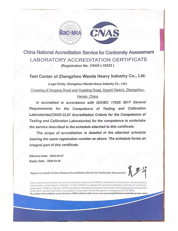 熱烈祝賀鄭州萬(wàn)達(dá)重工股份有限公司順利通過(guò)CNAS實(shí)驗(yàn)室認(rèn)定