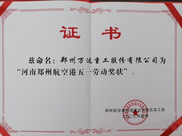 萬達重工榮獲“河南鄭州航空港五一勞動獎狀”及個人“第一屆河南鄭州航空港大工匠”榮譽