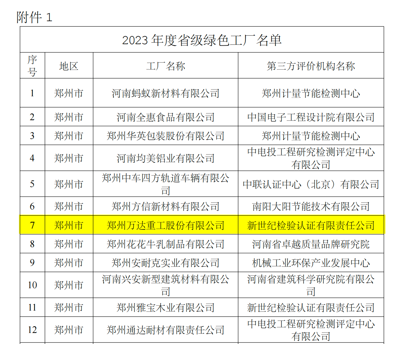 熱烈祝賀鄭州萬達(dá)重工股份有限公司被認(rèn)定為“河南省綠色工廠”