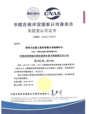 熱烈祝賀鄭州萬達(dá)重工股份有限公司順利通過CNAS實(shí)驗(yàn)室認(rèn)定