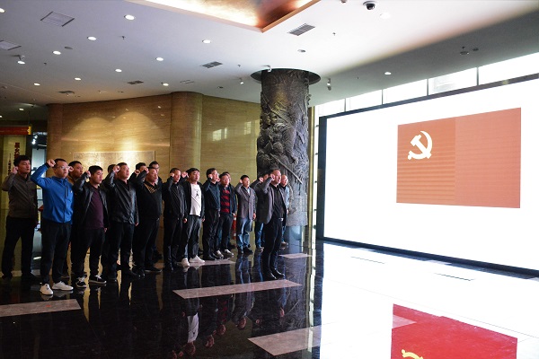 參觀結(jié)束后,在中原英烈紀(jì)念館一樓展廳內(nèi),面對鮮紅的黨旗,全體黨員胸佩黨徽,由于副書記領(lǐng)誓,大家舉起右拳,高聲重溫了入黨誓詞。隨后,集體觀看了“不忘初心、牢記使命”主題教育宣傳片。