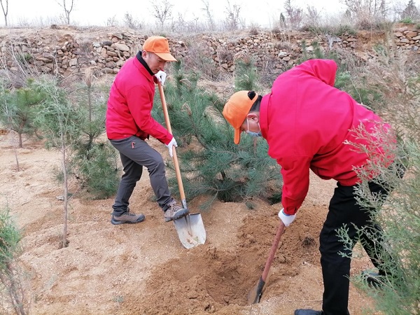 栽下棵棵樹苗,留下一片新綠。植樹現(xiàn)場黨旗、司旗、黨小組旗幟在風(fēng)中迎風(fēng)飄揚(yáng),植樹活動中,一派緊張有序、熱火朝天的勞動景象,大家個(gè)個(gè)態(tài)度積極、熱情高漲、干勁十足,揮鍬挖坑、運(yùn)送樹苗、扶植苗木、培實(shí)新土、提桶澆灌,大家比干勁、比質(zhì)量,各個(gè)環(huán)節(jié)銜接有序,樣樣做得認(rèn)真到位,大家樂在其中,配合默契,真正是勁往一處使、汗往一處流,一株株樹苗迎風(fēng)挺立,展現(xiàn)出勃勃生機(jī)。經(jīng)過熱烈有序的植樹勞動,共栽植側(cè)柏、油松苗木200余棵,順利完成了義務(wù)植樹任務(wù)。