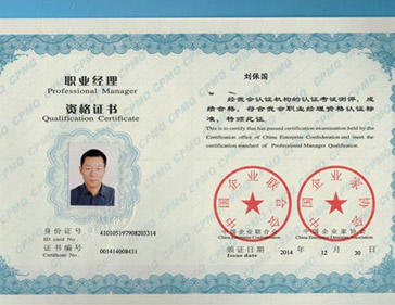 熱烈祝賀我公司劉保國(guó)等6位同志獲得職業(yè)經(jīng)理人資格證書