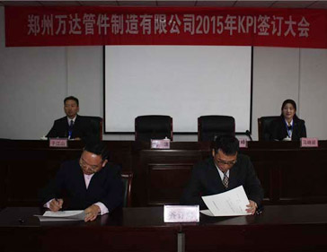 2016/01/28 412 鄭州萬達(dá)管件制造有限公司2015年KPI簽訂會(huì)于1月30號(hào)在公司行政區(qū)會(huì)議室隆重舉行,公司班長(zhǎng)以上所有管理人員參加了此次簽訂會(huì)議。簽訂會(huì)分為三級(jí)簽訂,即:董事長(zhǎng)與總經(jīng)理簽訂、總經(jīng)理與公司各高管簽訂、公司各高管與分管的各部門負(fù)責(zé)人簽訂,近期,各部門負(fù)責(zé)人將部門的KPI指標(biāo)進(jìn)行分解,與各班組及相關(guān)崗位簽訂目標(biāo)責(zé)任書,達(dá)到千...