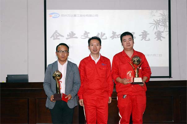 本次企業(yè)文化知識(shí)競(jìng)賽共持續(xù)三個(gè)半小時(shí),由控股公司友聯(lián)智能、子公司萬達(dá)科技、萬達(dá)邁克及總公司萬達(dá)重工的14個(gè)部門共同組成的15支代表隊(duì)伍共66人參加了比賽。比賽評(píng)委由公司董事長(zhǎng)、書記何清、工會(huì)主席于江山、總工袁希海、人力資源部經(jīng)理趙書麗擔(dān)任,過程精彩、激烈,觀眾熱情高漲,各選手互相配合,團(tuán)結(jié)協(xié)作。最終在“公開,公正,公平”的原則下,經(jīng)過初露鋒芒、心有靈犀、當(dāng)機(jī)立斷、精誠(chéng)合作四輪的角逐產(chǎn)生優(yōu)勝獎(jiǎng)團(tuán)隊(duì):行政管理部代表隊(duì)榮獲一等獎(jiǎng),萬達(dá)邁科、生產(chǎn)管理部一隊(duì)獲得二等獎(jiǎng),物流服務(wù)中心、知識(shí)體系二期聯(lián)合部及質(zhì)量管理部榮獲三等獎(jiǎng)。