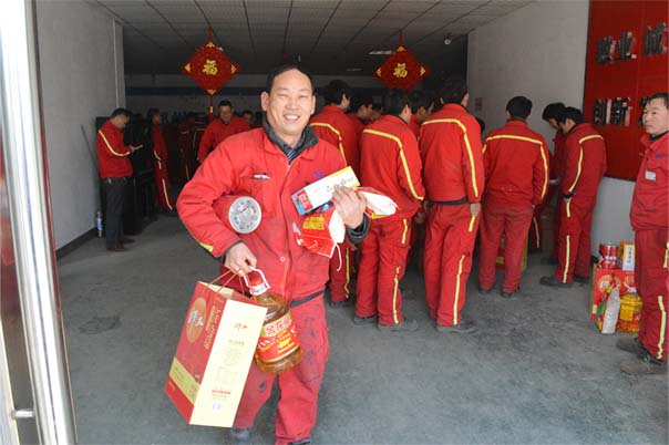 新年到,福利好,萬(wàn)達(dá)家人臉上笑。2017年1月20日下午1點(diǎn),鄭州萬(wàn)達(dá)重工股份有限公司在行政大廳向全體在職員工發(fā)放春節(jié)禮品及禮金。
