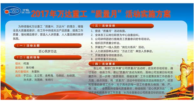 鄭州萬達重工“匠心筑夢萬達”第六屆 質(zhì)量月活動圓滿啟動