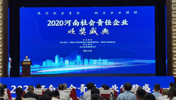 2021年5月21日下午,由河南日報(bào)社、河南省國資委、河南省工商業(yè)聯(lián)合會聯(lián)合主辦,河南日報(bào)傳媒有限公司承辦的“2020河南社會責(zé)任企業(yè)推選活動頒獎典禮”在鄭州黃河迎賓館隆重舉行。