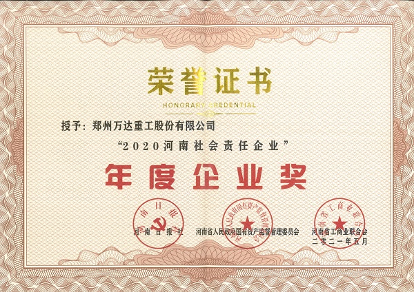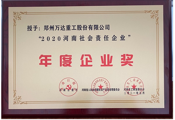 熱烈祝賀鄭州萬達(dá)重工股份有限公司榮獲“2020河南社會責(zé)任企業(yè)”年度企業(yè)獎
