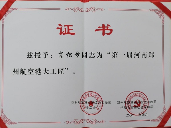 五一勞動獎狀是各級工會授予在中國特色社會主義建設(shè)中做出突出貢獻的企事業(yè)單位、機關(guān)團體的光榮稱號,含金量十足。個人“第一屆河南鄭州航空港大工匠”榮譽稱號代表著對工作執(zhí)著專注、精益求精、一絲不茍、追求卓越的新時代工匠人才。