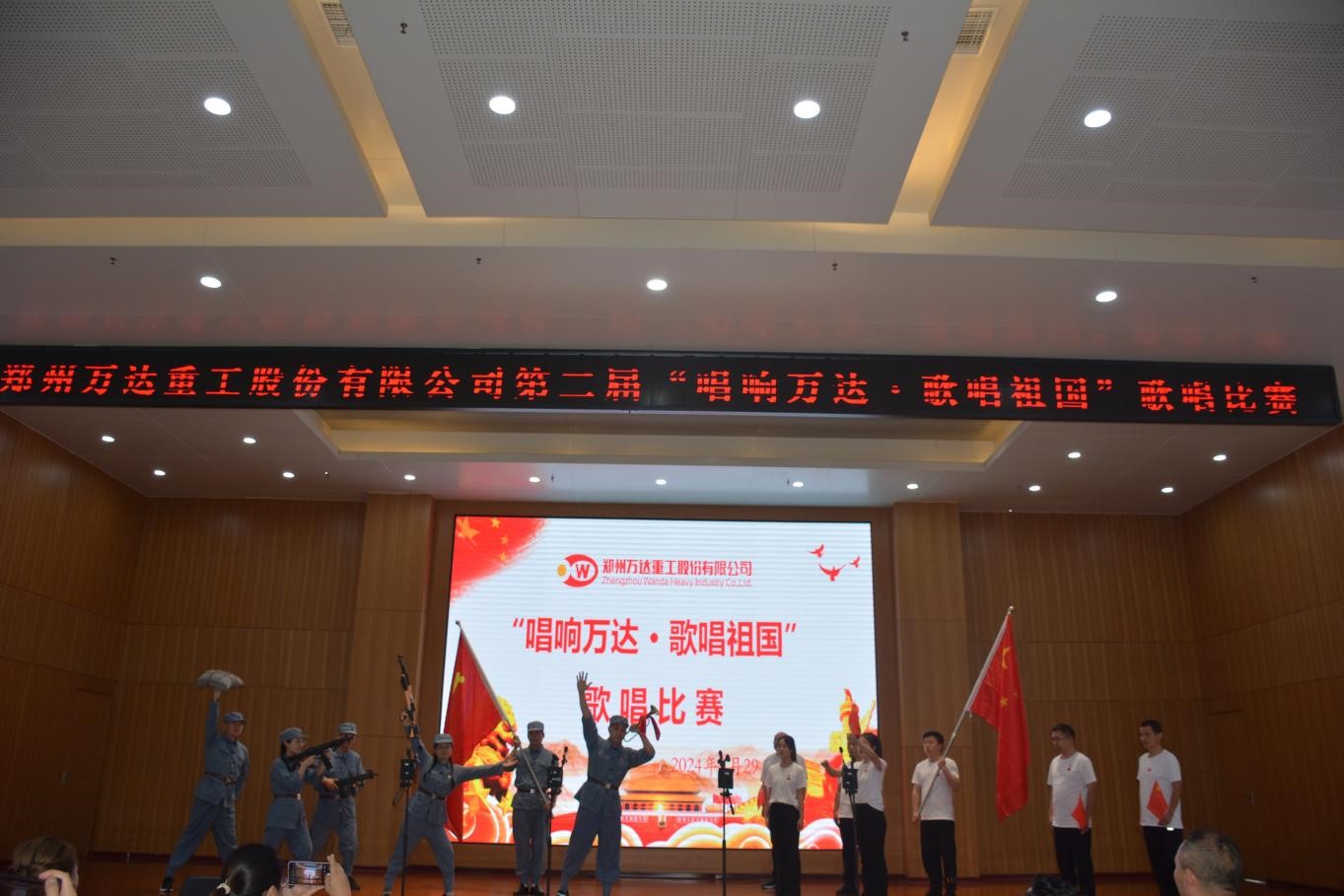為慶祝中華人民共和國成立75周年,進一步活躍員工文化生活,充分展現(xiàn)萬達員工風采風貌,2024年9月29日下午,鄭州萬達重工股份有限公司舉辦了第二屆“唱響萬達•歌唱祖國”比賽,向中華人民共和國75周年華誕獻禮。股份公司黨委書記、董事長何清,公司部分高管及全體員工參加了本次活動。本次活動特邀了銀河辦事處領(lǐng)導、港區(qū)2家優(yōu)秀非公企業(yè)黨支部書記進行了觀賽,鄭州電視臺進行了現(xiàn)場錄制。