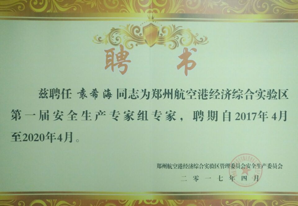 熱烈祝賀鄭州萬達(dá)重工股份有限公司總工程師袁希海同志成為第一屆鄭州航空港 經(jīng)濟(jì)綜合實(shí)驗(yàn)