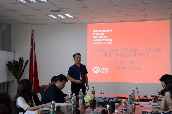 為持續(xù)強(qiáng)化萬達(dá)重工“持續(xù)改進(jìn)、追求更好”質(zhì)量方針,弘揚(yáng)工匠精神,將質(zhì)量管理進(jìn)行到底,進(jìn)一步將“固本強(qiáng)基、聚焦發(fā)展”工作主題落實(shí)到實(shí)處,2019年5月21日下午在行政樓八樓會議室召開了第八屆質(zhì)量月活動總結(jié)會議,會議由工會主席于江山主持,股份公司董事長、書記、質(zhì)量月活動領(lǐng)導(dǎo)小組組長何清,質(zhì)量月活動領(lǐng)導(dǎo)小組成員及中層以上管理人員參加。